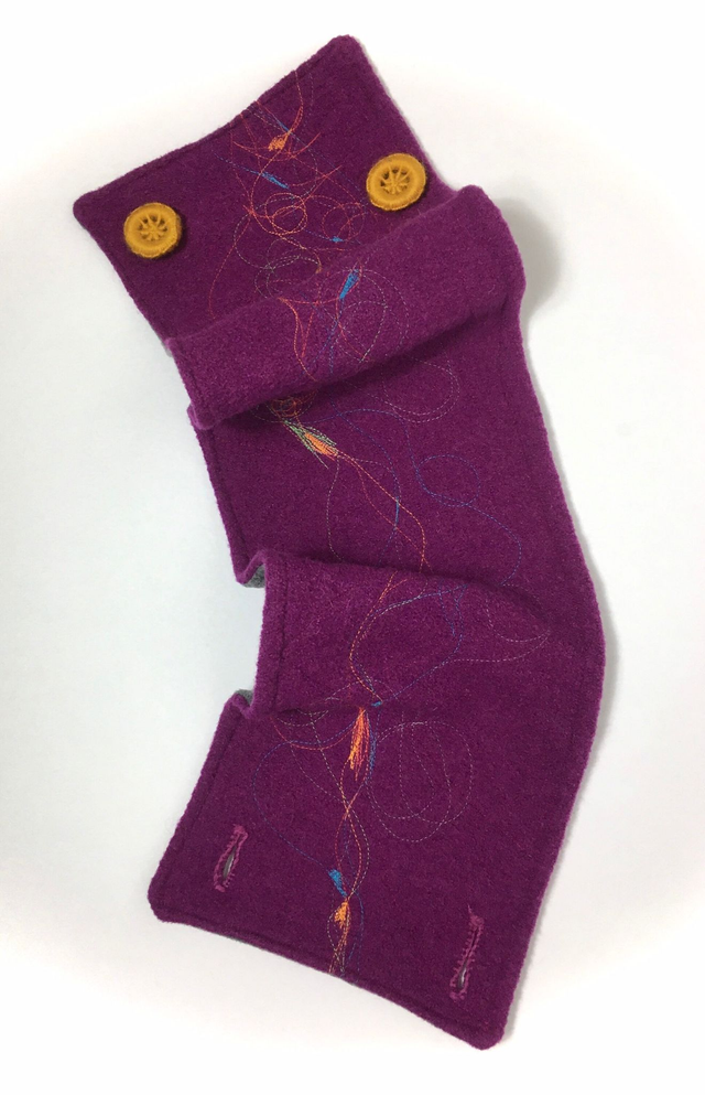 Col snood unique réalisé avec de la laine bouillie color magenta avec à l'intérieur du tissu polaire.