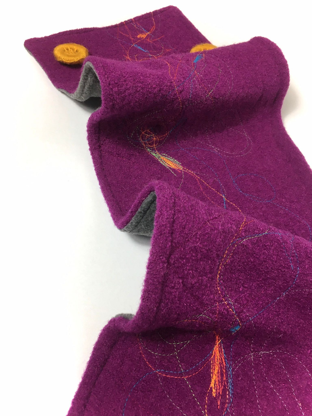 J'ai pris plaisir à broder le tissu avec des couleurs forts et dynamiques.